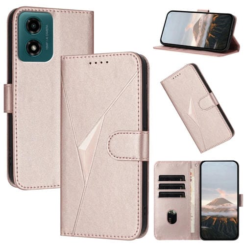 Funda de Cuero con Hebilla y Diseño Triangular para Motorola Moto G04 (Oro Rosa)