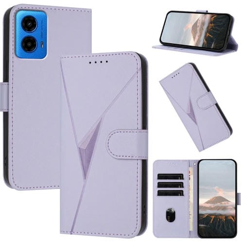 Funda de Cuero con Hebilla y Diseño Triangular para Motorola Moto G45 (Morado Claro)