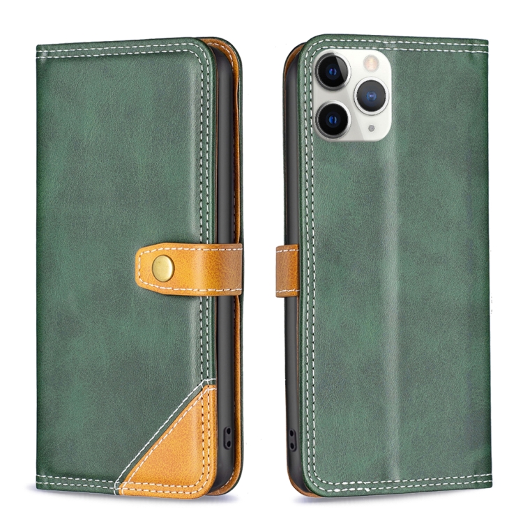 Funda de Cuero para iPhone 11 Pro Max con Hilo de Coser Doble a Juego (Verde)