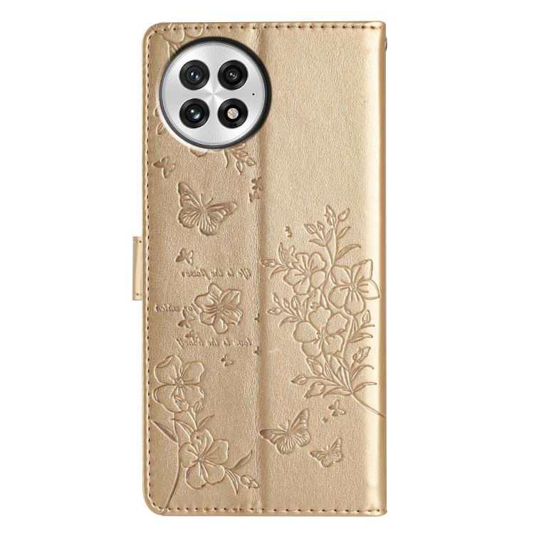 Funda de Cuero para OnePlus 13 con Mariposas y Flores (Dorada)