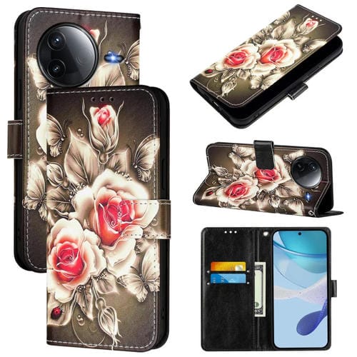 Funda de Cuero con Patrón de Dibujo de Colores para Redmi K80/K80 Pro (Rosas Sobre Negro)