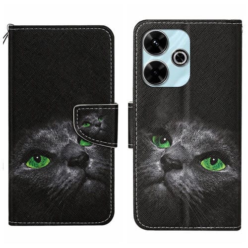 Funda de Cuero con Patrón de Dibujo de Colores para Xiaomi Redmi 13 4G (Gato Negro)