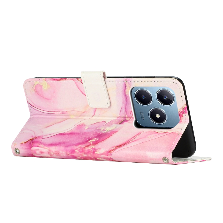 Funda de Cuero con Patrón de Mármol Pintado para Realme C63/C61/Note 60 (Oro Rosa)