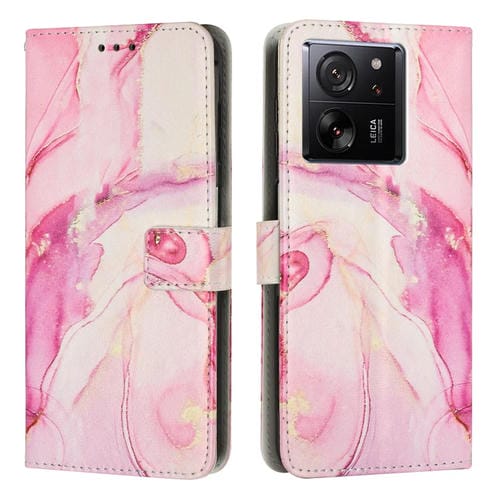Funda de Cuero con Patrón de Mármol Pintado para Xiaomi 13T/13T Pro (Oro Rosa)