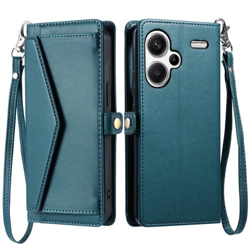 Funda de Cuero con Ranura para Múltiples Tarjetas y Billetera Global para Redmi Note 13 Pro+ 5G con Cordón (Verde)