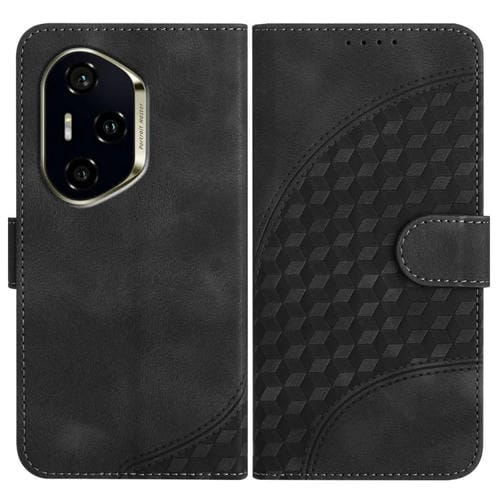Funda de Cuero con Relieve Cabeza de Elefante para Honor 300 Pro y 300 Ultra con Cordón (Negro)