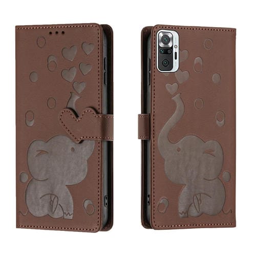 Funda de Cuero con Relieve de Elefante de Dibujos Animados para Redmi Note 10 Pro (Marrón)
