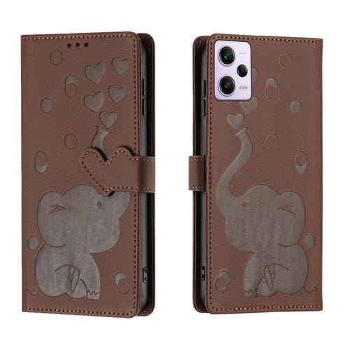 Funda de Cuero con Relieve de Elefante de Dibujos Animados para Redmi Note 12 Pro 5G (Marrón)