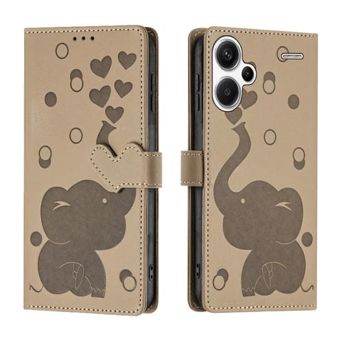 Funda de Cuero con Relieve de Elefante de Dibujos Animados para Redmi Note 13 Pro+ (Caqui)