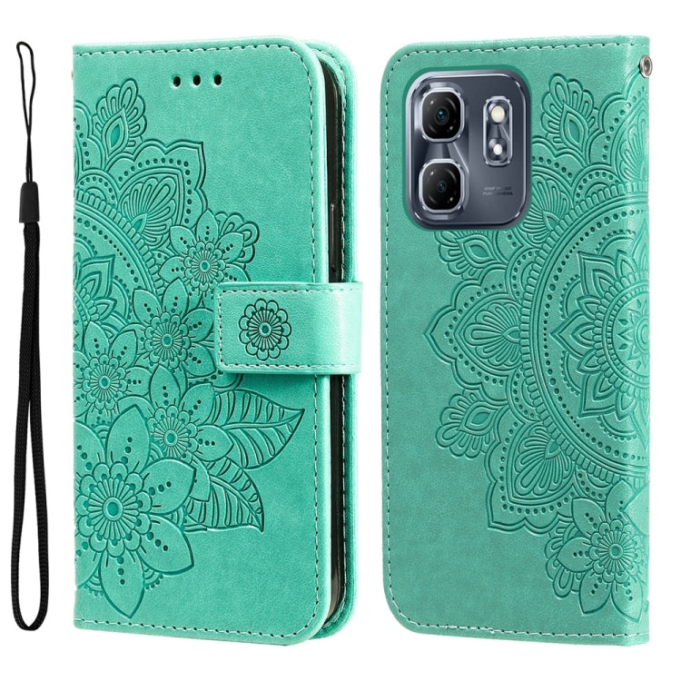 Funda de Cuero con Relieve de Flores de Siete Pétalos para Infinix Hot 50I/Smart 9 (Verde)