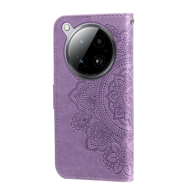 Funda de Cuero con Relieve de Flores de Siete Pétalos para Infinix Zero 40 4G/5G (Morado Claro)