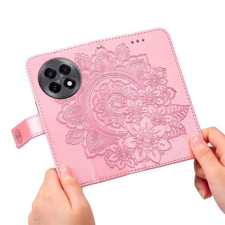 Funda de Cuero con Relieve Flores Siete Pétalos para OnePlus 13R Ace 5 Pro (Oro Rosa)