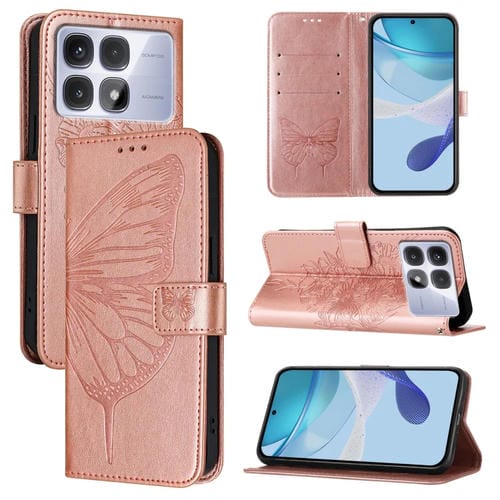 Funda de Cuero con Relieve de Mariposa para Redmi K70 Ultra 5G (Oro Rosa)