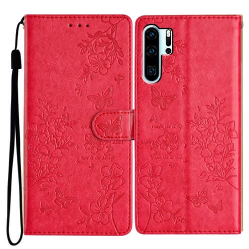 - 1x Funda de Cuero con Relieve Mariposa y Flor para Huawei P30 Pro (Rojo)