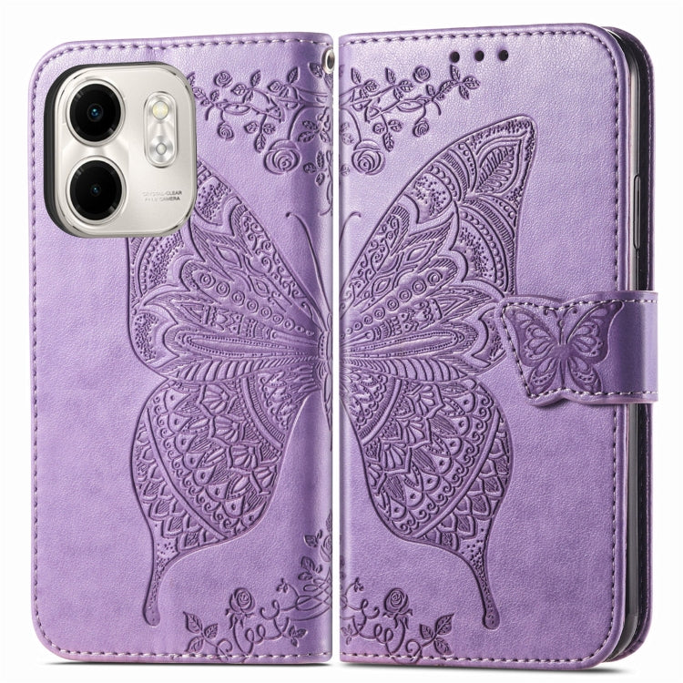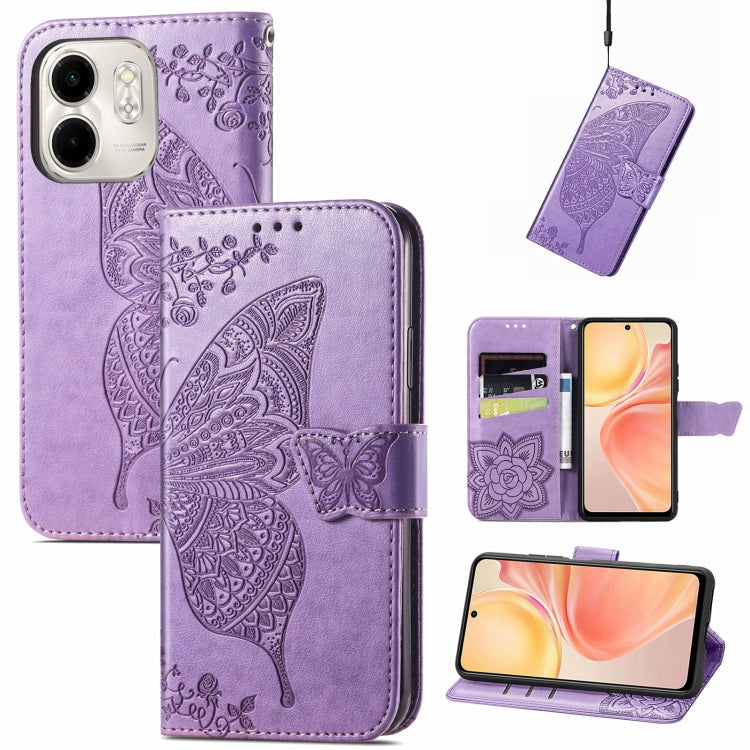 Funda de Cuero con Relieve Mariposa y Flor para Infinix Smart 9 (Lavanda)