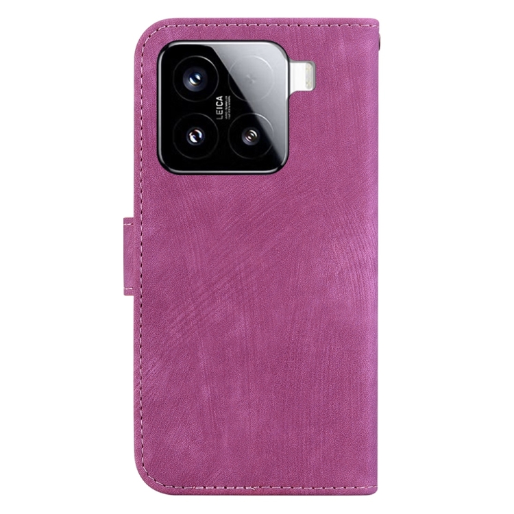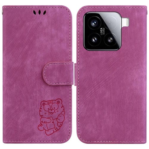 Funda De Cuero Con Relieve De Tigre Para Xiaomi 15 (Rosa Roja)