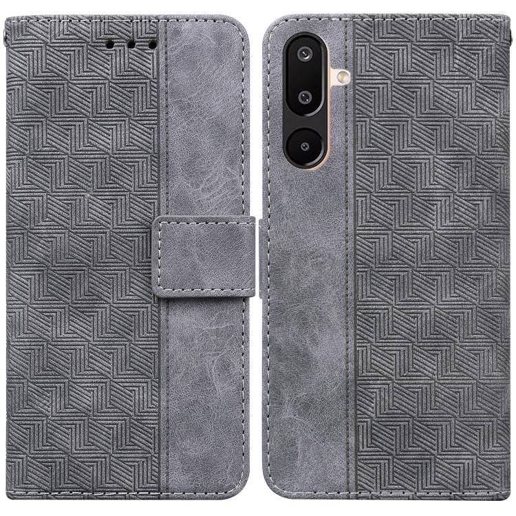 Funda de cuero con relieve geométrico para Samsung Galaxy M16 5G / F16 5G / M36 5G (gris)