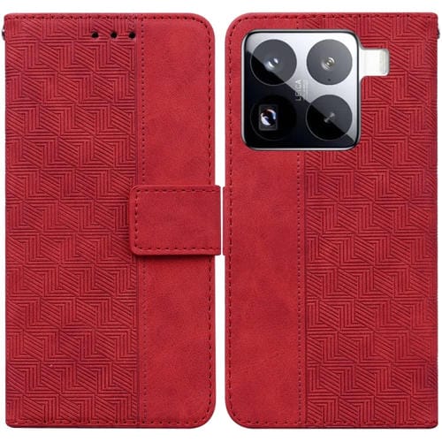 Funda De Cuero Con Relieve Geométrico Para Xiaomi 15 Pro (Roja)