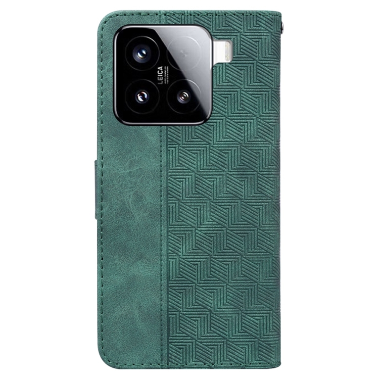 Funda De Cuero Con Relieve Geométrico Para Xiaomi 15 (Verde)