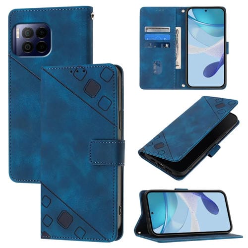 Funda de Cuero con Relieve para Teléfono T-Mobile Revvl 7 Pro 5G (Azul)