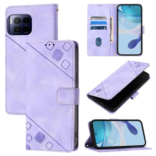 Funda de Cuero con Relieve y Tacto de Piel para Teléfono T-Mobile Revvl 7 Pro 5G (Morado Claro)