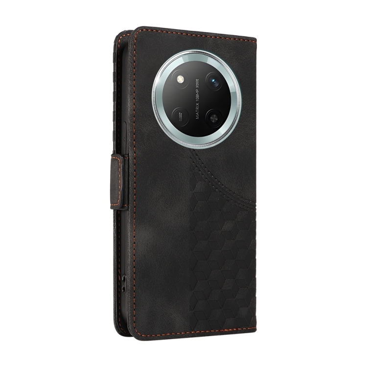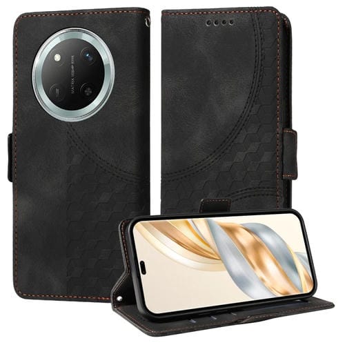 Funda de Cuero con Rombos en Relieve y Estrellas para Honor X9C/Magic7 Lite (Negra)