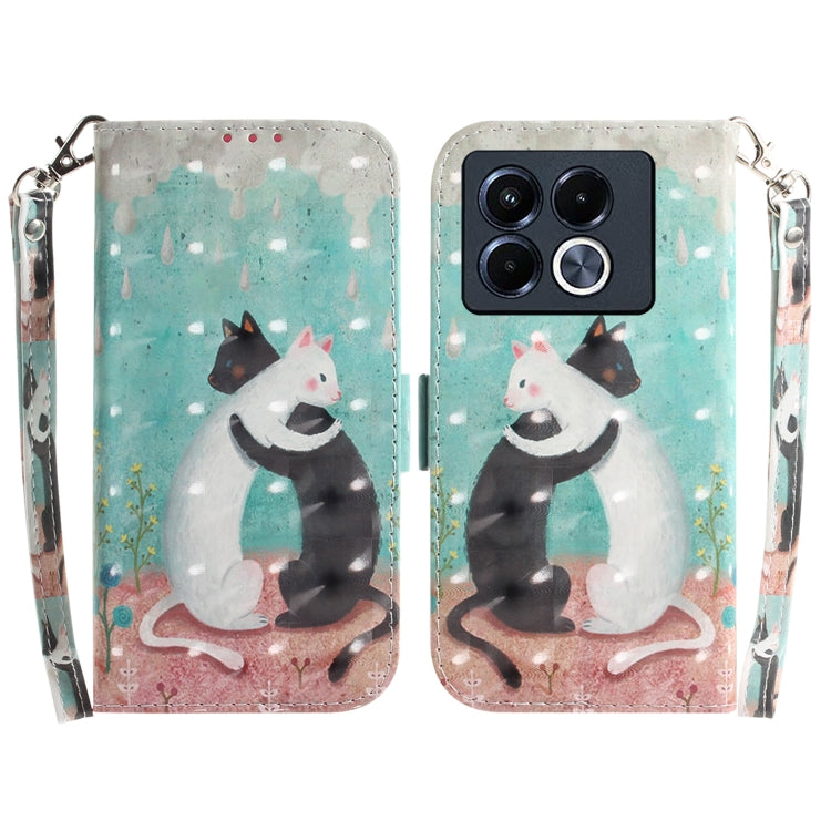 Funda de Cuero con Tapa Horizontal 3D para Infinix Note 40 5G (Gato Blanco y Negro)