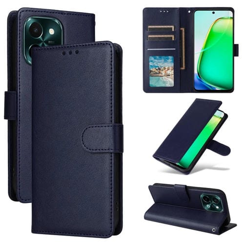 Funda de Cuero con Tapa Horizontal Multifuncional para Teléfono Vivo Y28 4G con Ranura para Tres Tarjetas (Azul Marino)