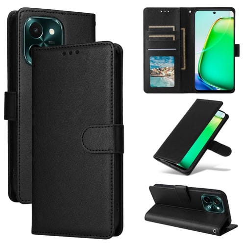 Funda de Cuero con Tapa Horizontal Multifuncional para Teléfono Vivo Y28 4G con Ranura para Tres Tarjetas (Negro)