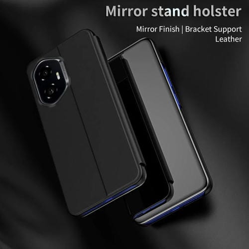 Funda de Cuero con Tapa Horizontal y Espejo para Honor 300 Pro con Soporte (Dorado)