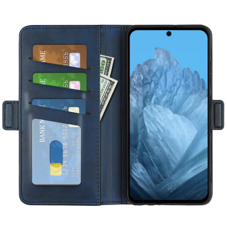 Funda de Cuero con Tapa Horizontal y Hebilla Magnética para Google Pixel 9/9 Pro (Azul Oscuro)