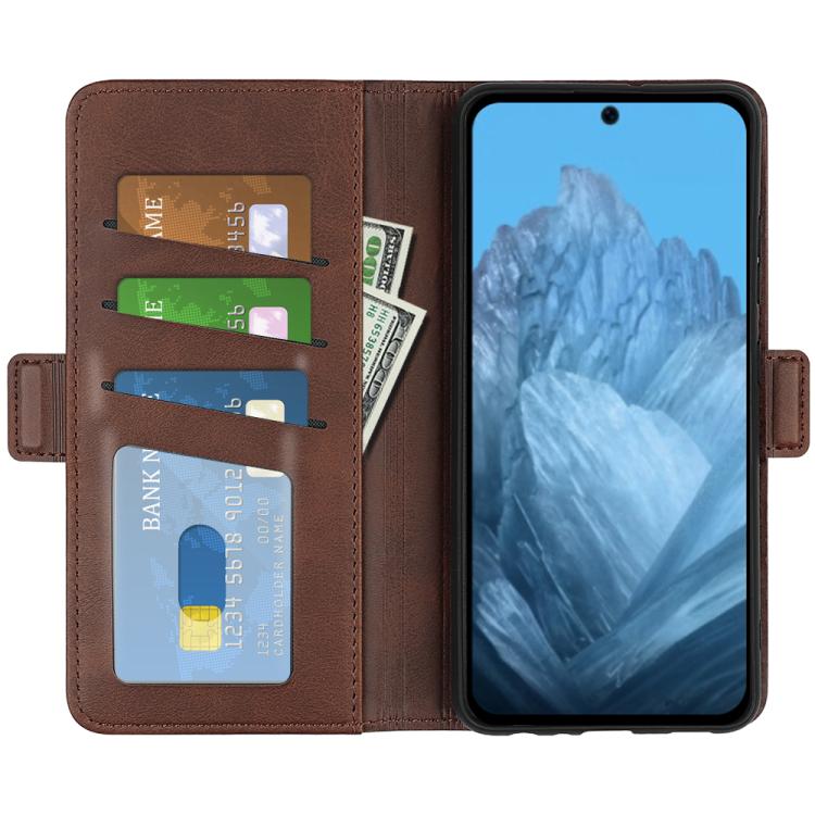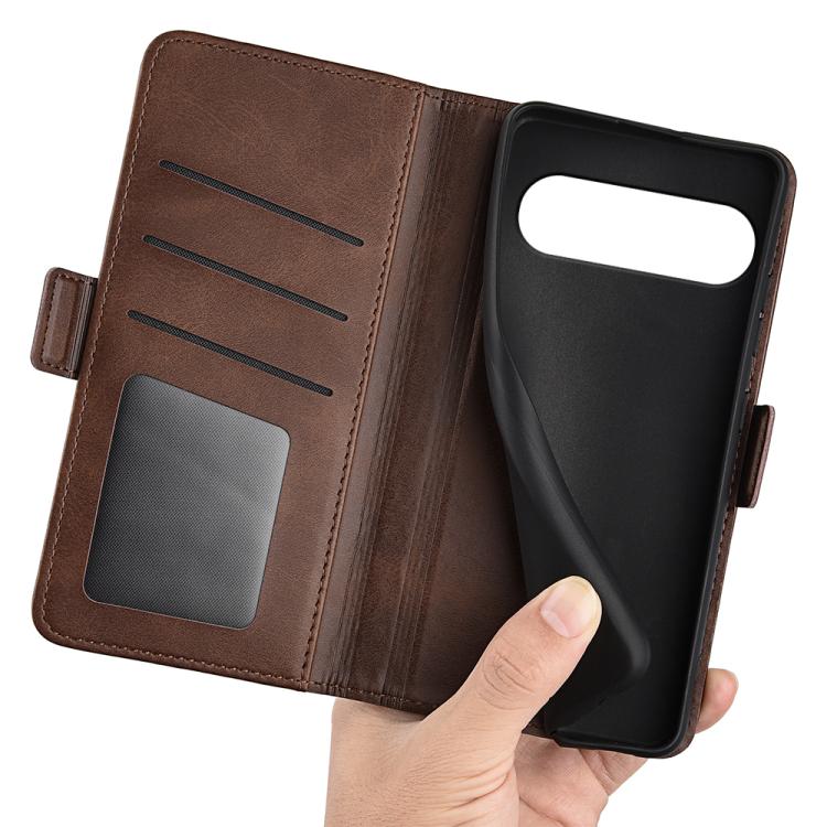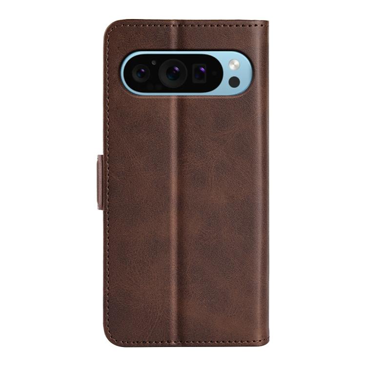 Funda de Cuero con Tapa Horizontal y Hebilla Magnética Doble Cara para Google Pixel 9/9 Pro (Marrón)