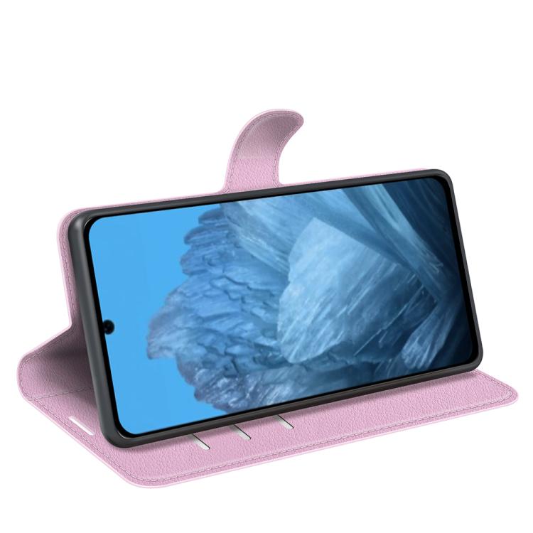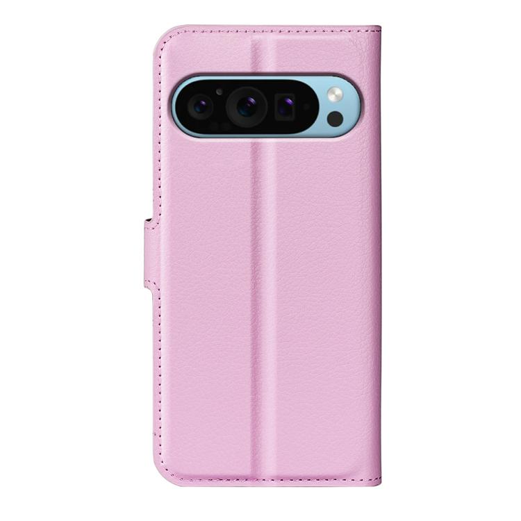 Funda de Cuero con Tapa Horizontal y Textura de Lichi para Google Pixel 9 y 9 Pro con Soporte (Rosa)