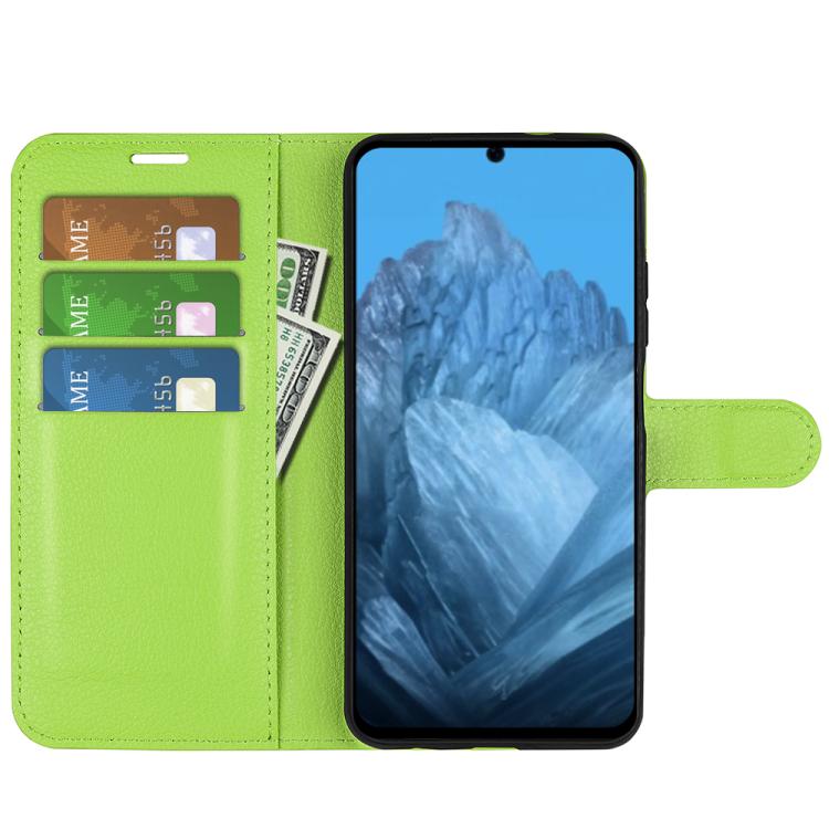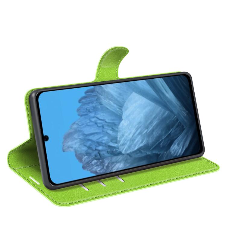 Funda de Cuero con Tapa Horizontal y Textura de Lichi para Google Pixel 9/9 Pro con Soporte (Verde)