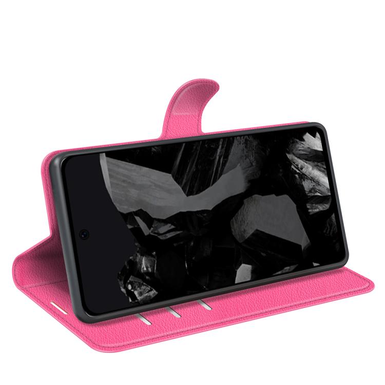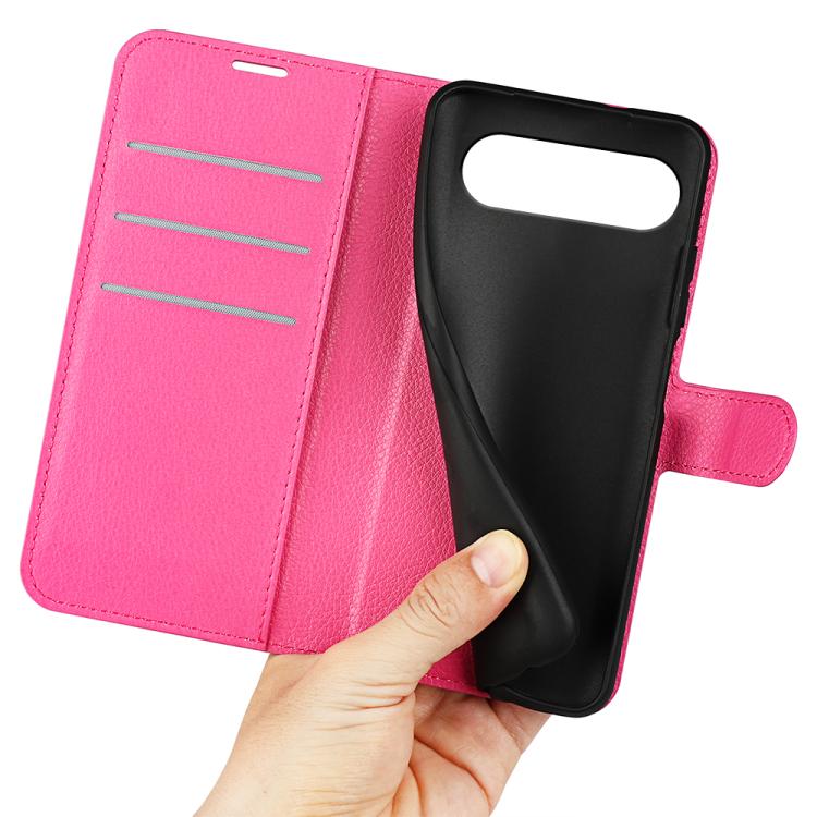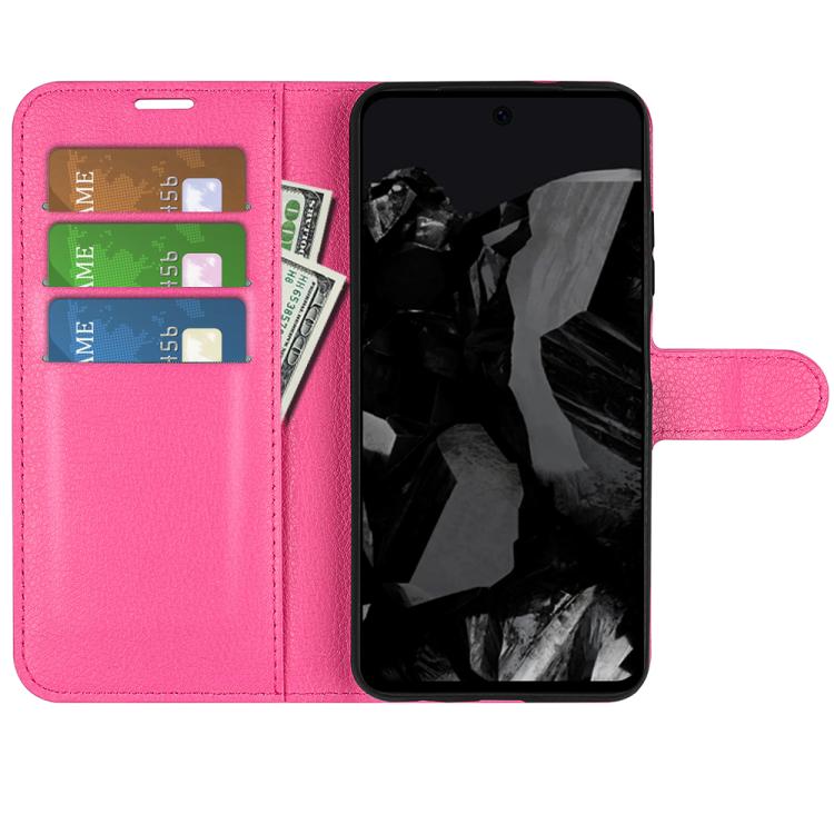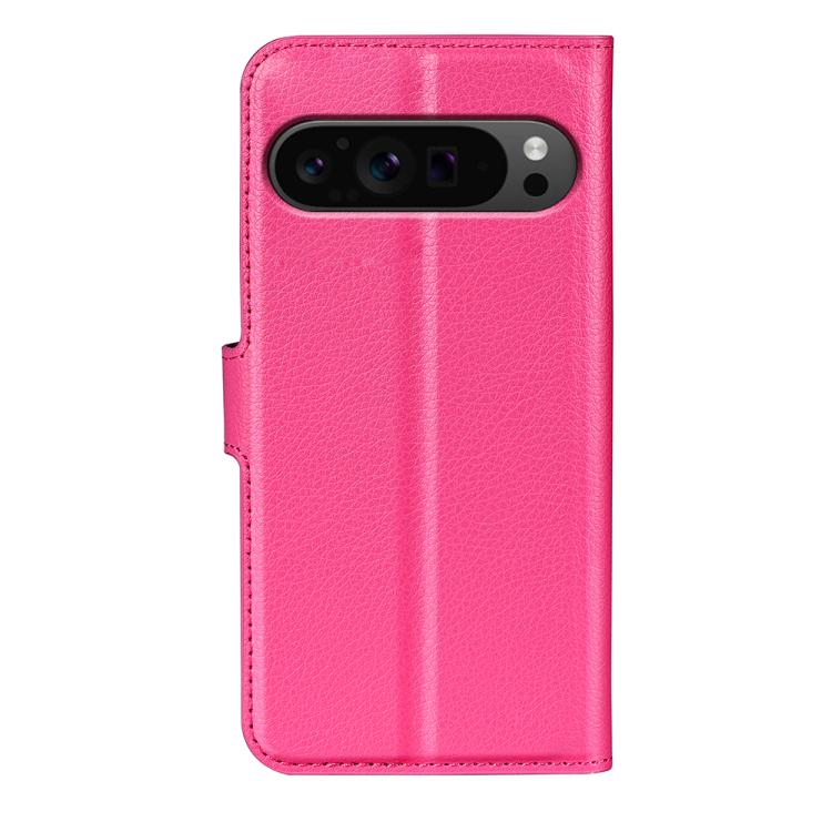 Funda de Cuero con Tapa Horizontal y Textura de Lichi para Google Pixel 9 Pro XL con Soporte (Rosa y Rojo)