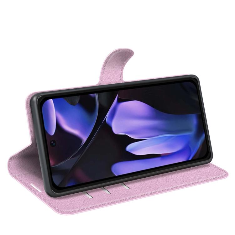 Funda de Cuero con Tapa Horizontal y Textura de Lichi para Google Pixel 9A con Soporte (Rosa)