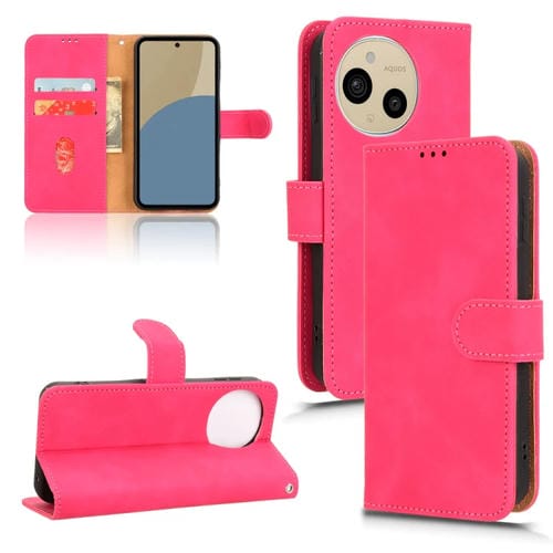 Funda de Cuero para Sharp Aquos Sense9 con Tapa Magnética y Tacto Piel (Rosa y Rojo)