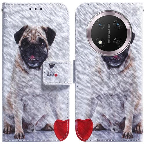 Funda de Cuero con Tapa para Honor X9C con Dibujo Colorido (Pug)