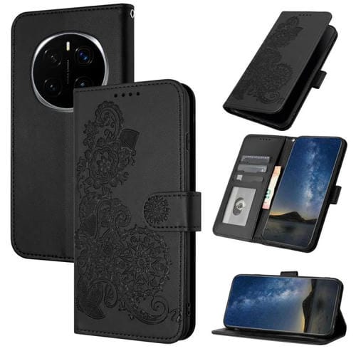 Funda de Cuero con Tapa para Honor Magic7 con Diseño Flor de Datura en Relieve (Negro)
