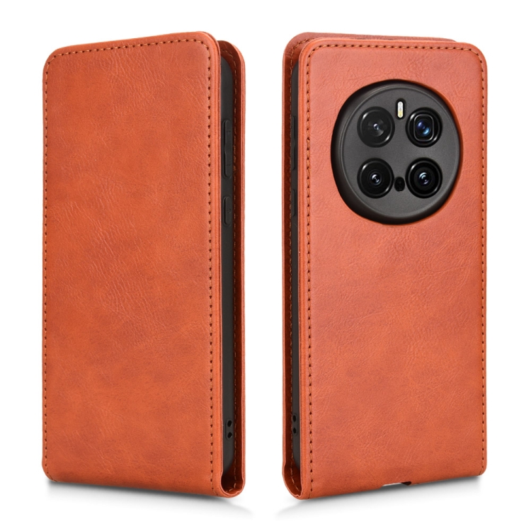 Funda de Cuero con Tapa Vertical Magnética para Honor Magic7 Pro (Marrón)