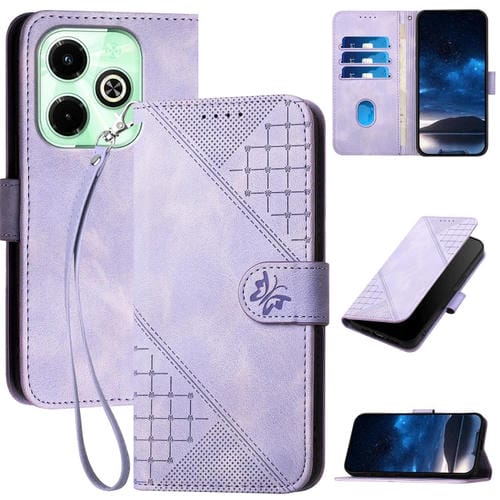 Funda de Cuero para Infinix Hot 40I 4G Yx0080 con Tapa y Cordón Diseño Mariposas (Morado Claro)