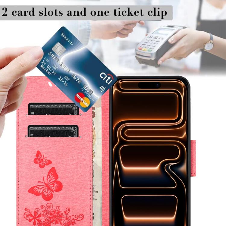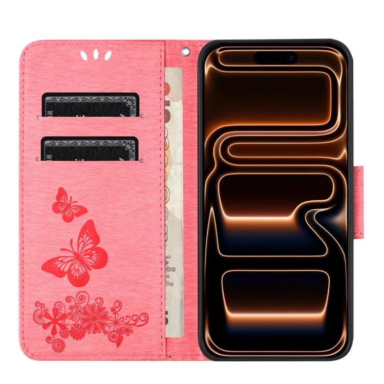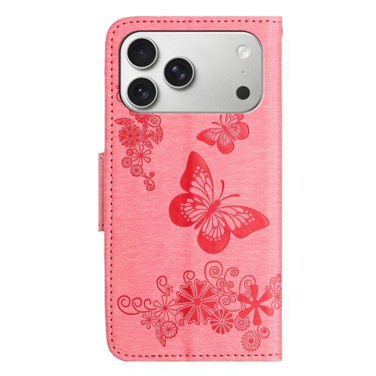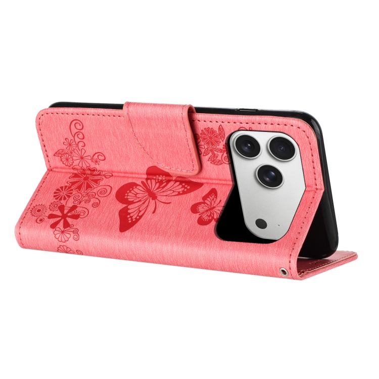 Funda de cuero con tapa y diseño de mariposas para iPhone 17 Pro (rosa)