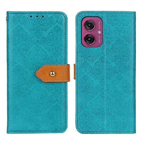 Funda de Cuero con Tapa y Diseño Floral en Relieve para Motorola Moto G55 5G (Azul)