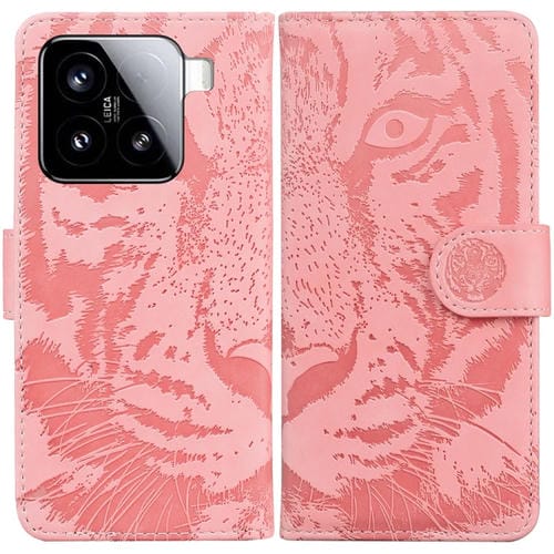 Funda De Cuero Con Tapa Y Estampado De Tigre Para Xiaomi 15 (Rosa)