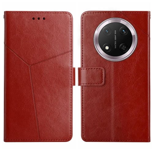 Funda de Cuero con Tapa y Patrón en Forma de y para Honor X9C (Marrón)