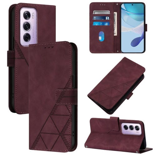 Funda de Cuero con Tapa y Relieve 3D para Teléfono Oppo Reno12 Pro Global Crossbody (Rojo Vino)
