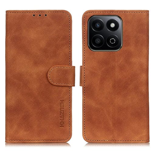 Funda de Cuero Khazneh con Tapa y Textura Retro para Honor 200 Smart y Play 60 Plus (Marrón)