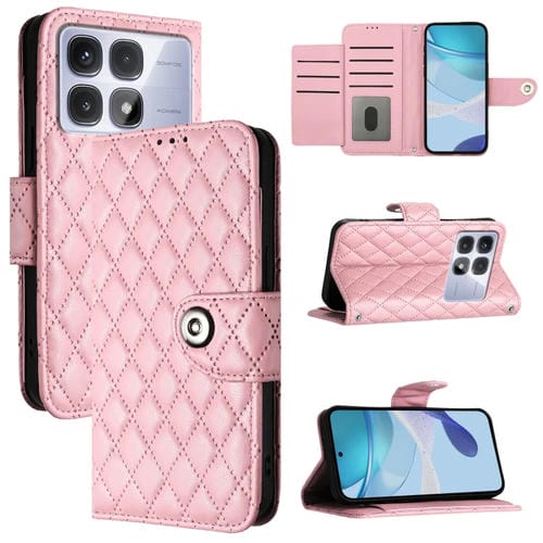 Funda de Cuero con Tapa y Textura Rombal Global para Redmi K70 Ultra 5G con Cordón (Rosa)