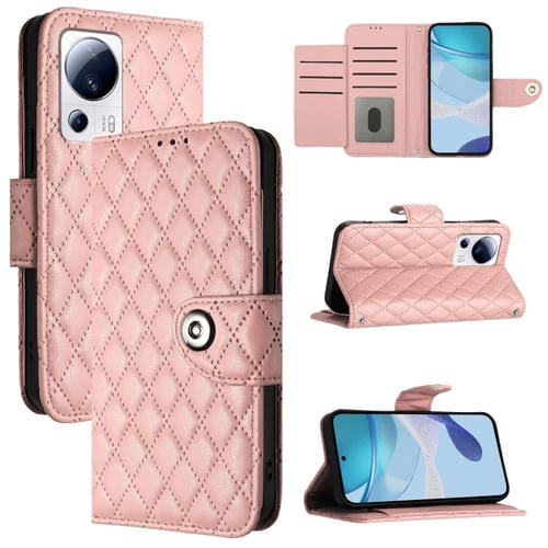 Funda de Cuero con Tapa y Textura Rómbica para Xiaomi 13 Lite/Civi 2 (Rosa Coral)