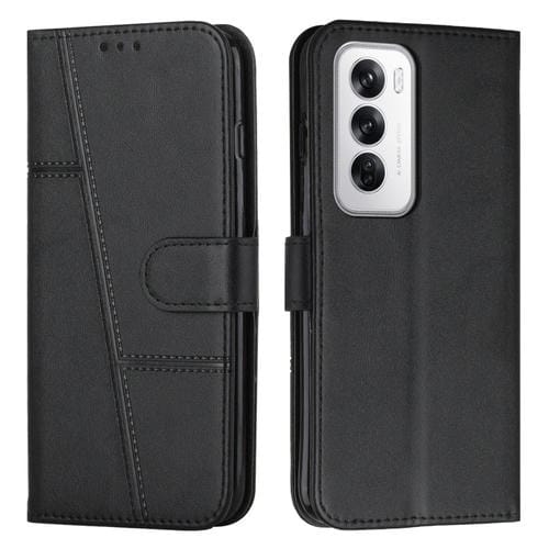 Funda de Cuero con Textura de Becerro y Costura Global para Oppo Reno12 5G (Negra)